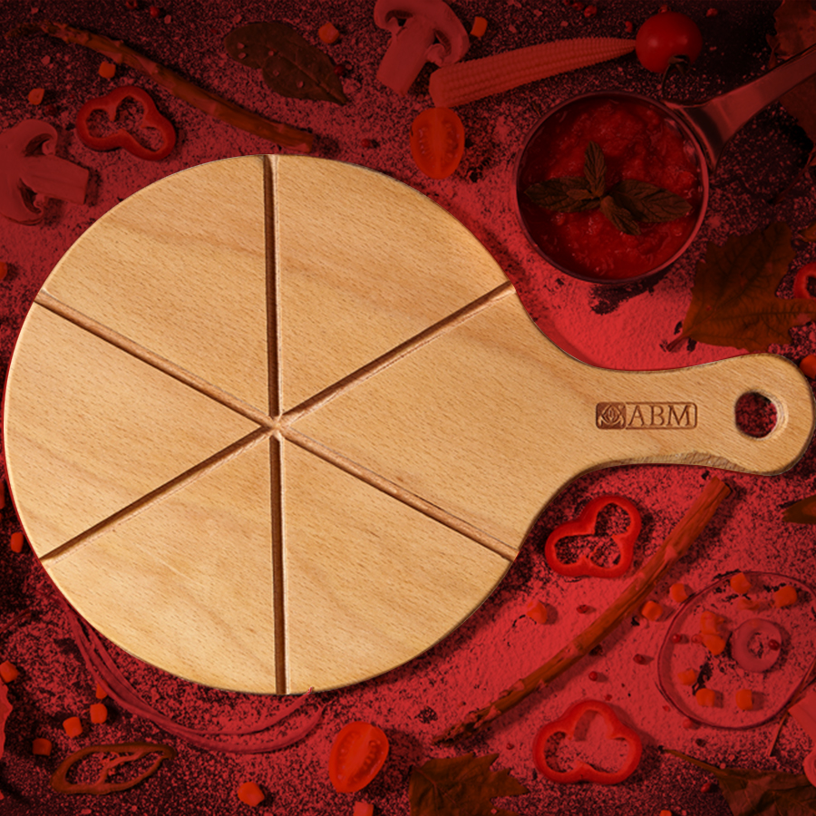 Yuvarlak, Saplı, Dilimli Pizza Servis Tahtası.